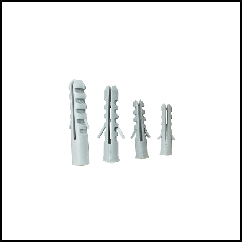 The wall plugs are crafted from high-quality pvc, ensures robust and permanent security in concrete and solid masonry. Its rimless design allows for deep setting below plaster to maximize load-bearing capacity and smaller edge distances by directing expansion forces parallel to the material edge. The slimline geometry facilitates easy insertion, while the anti-rotation lock guarantees installation safety. It is compatible with wood or chipboard screws, making it a versatile and proven choice for decades.